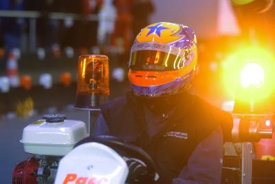 nach kurzer einweisung und mit nicht unter das vermummungsgebot fallenden sturzhauben ausgerüstet ging es in die boxengasse und zu einem 10minutigen qualifying. zusätzlich zu uns acht kollegen war eine weitere profitruppe mit rennoveralls dabei, die sich auch ordentlich durch das feld pflügten. es war also blaue flagge beachten angesagt, wollte man nicht zu einem persönlichen gespräch in die boxengasse per roter flagge gerufen werden.